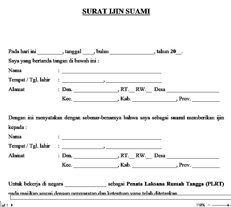 Surat izin istri untuk suami bekerja. Maybe you would like to learn more about one of these? We did not find results for: Check spelling or type a new query.